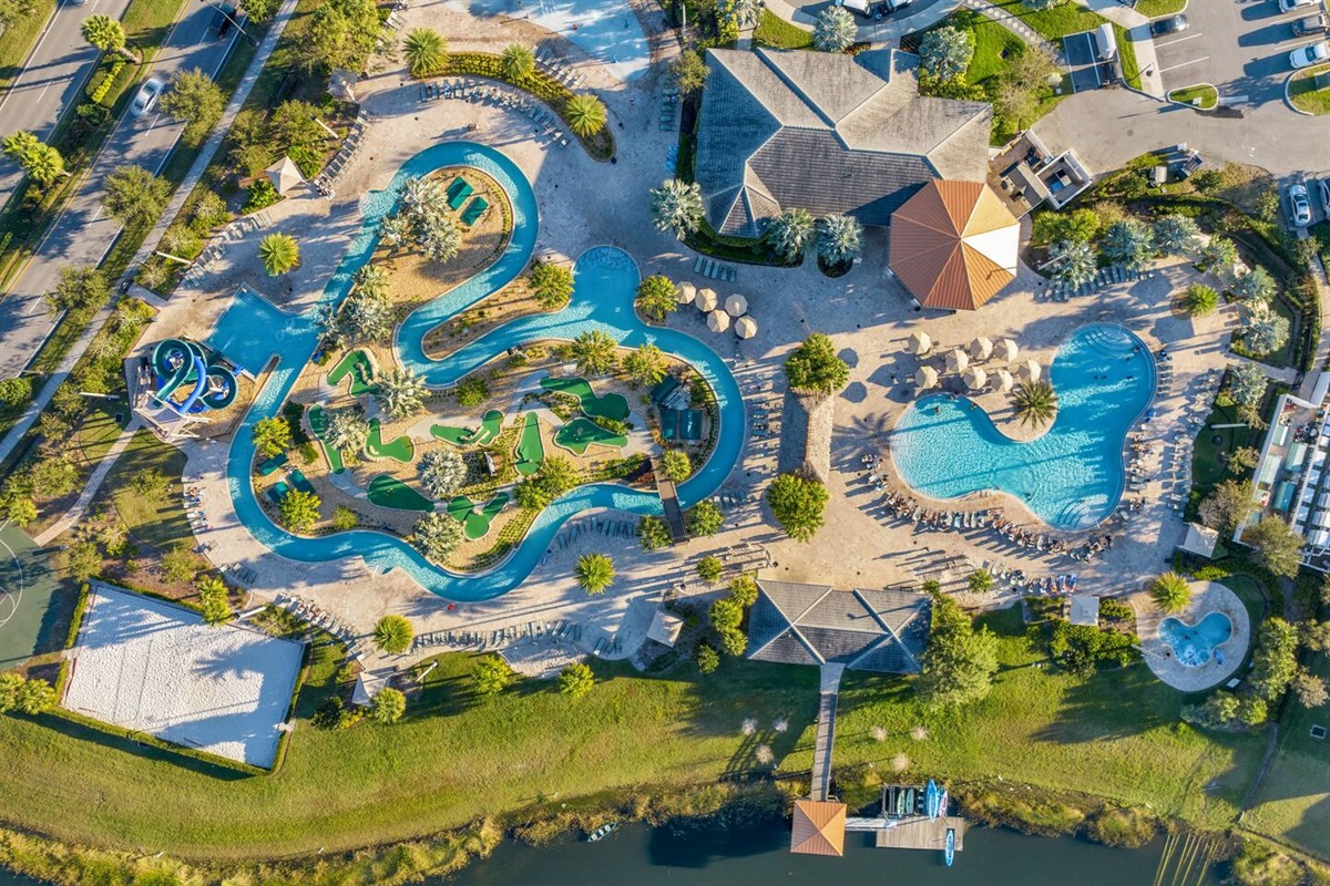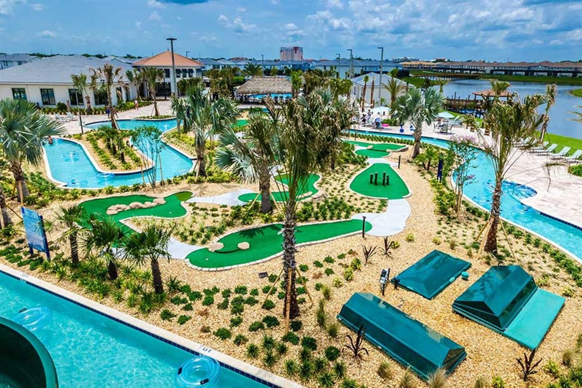 - One of the best features of our lovely vacation home is the FREE WATER PARK, with water slides, lazy river, mini golf, and more!