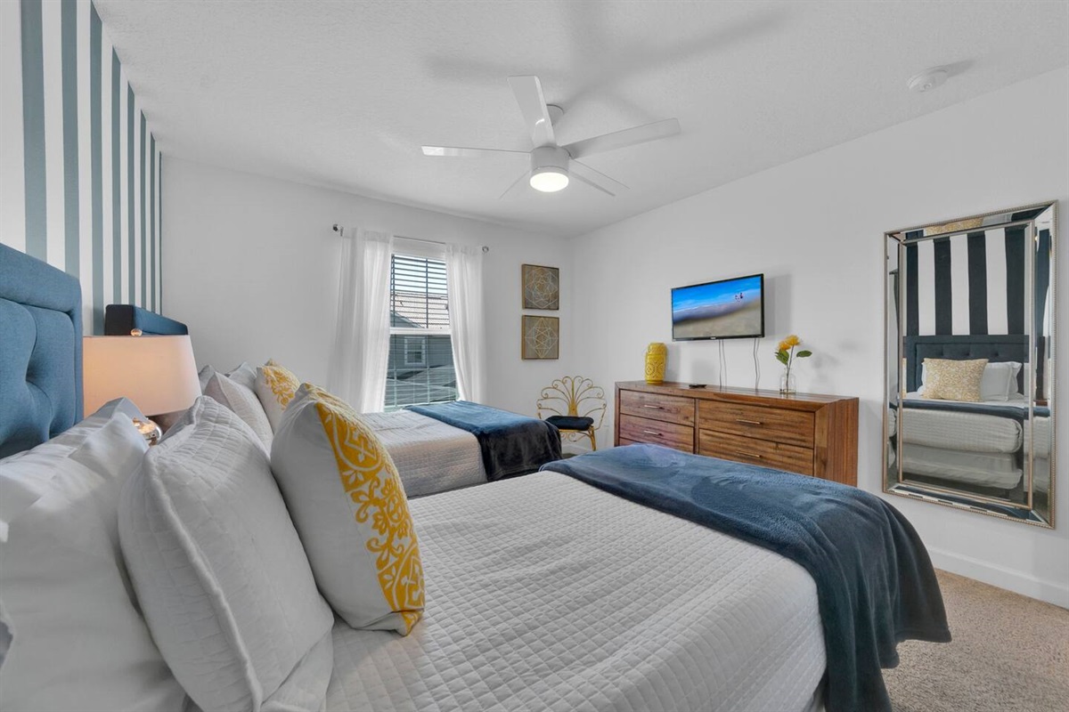 Unwind in our stylish 4-bedroom home with private pool at Storey Lake Resort, just minutes from Disney, Universal, and SeaWorld. Enjoy water slides, lazy river, tiki bar, and easy access to top golf courses, shopping, and dining. Perfect for relaxing after theme park adventures.Property Details