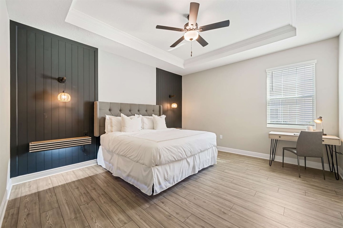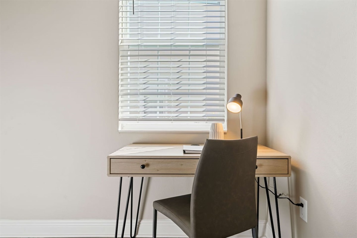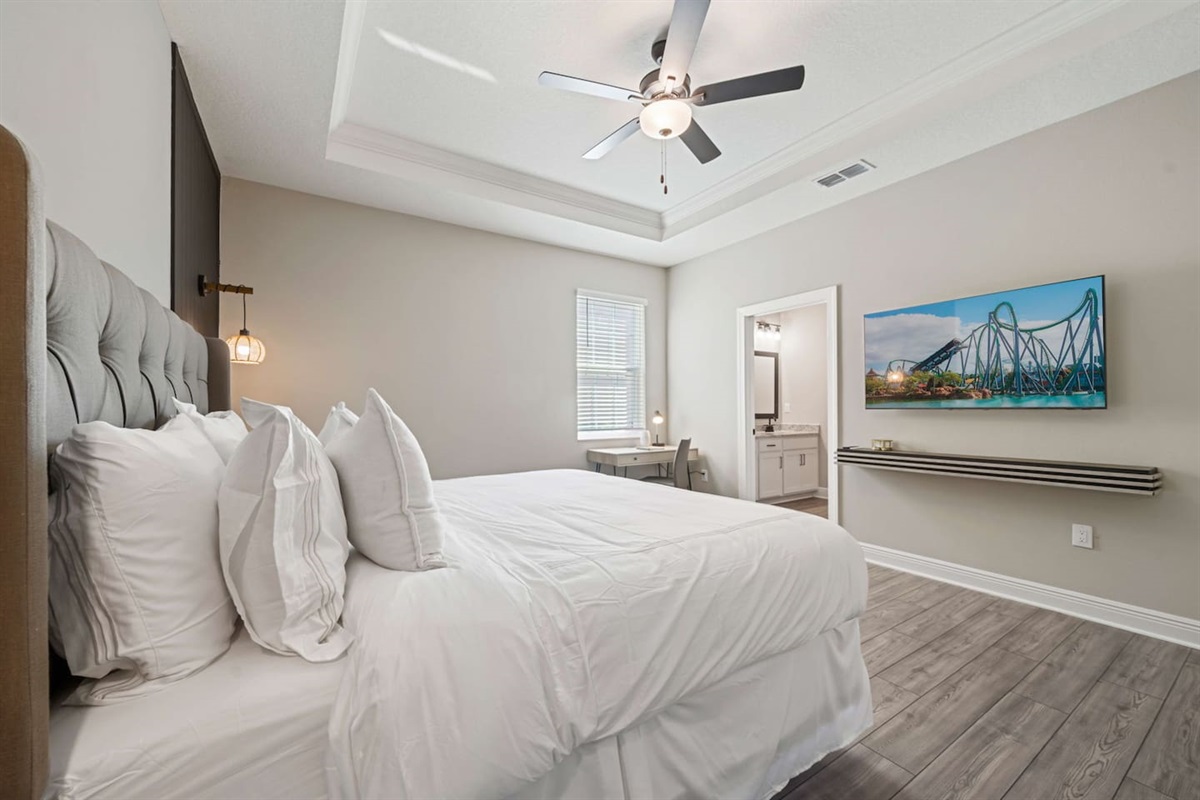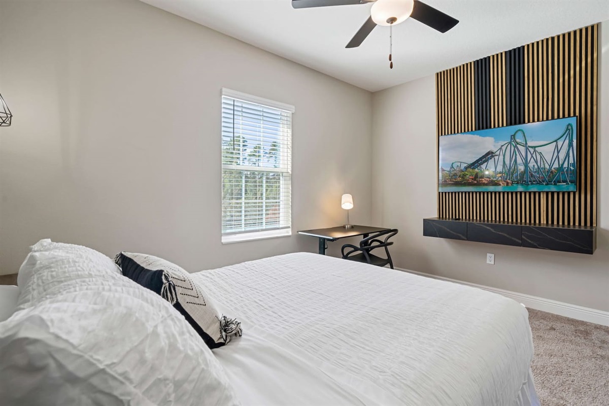 - 1 King bedroom (main floor, with desk) with Smart TV