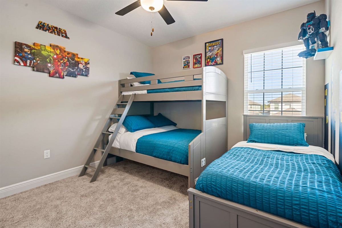 - 1 Marvel' kids bedroom with 1 full and 2 twins (bunk bed, upstairs)